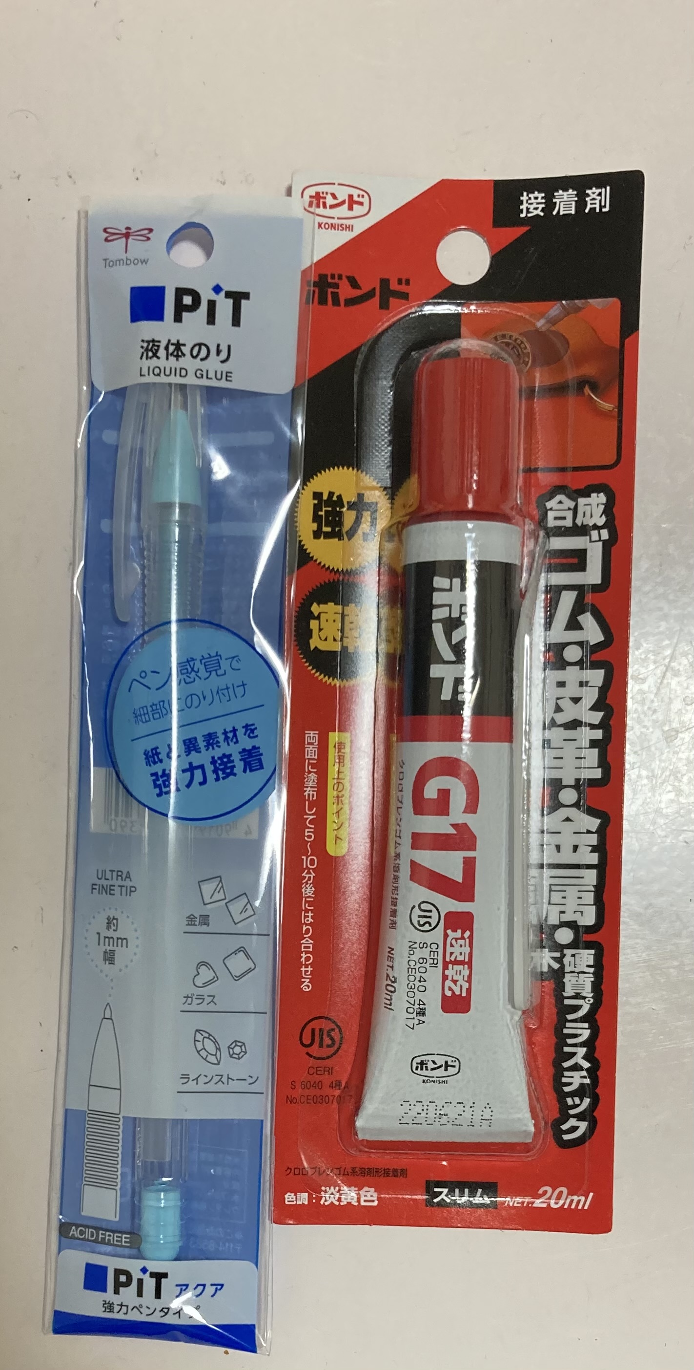 と言っても買うのは接着剤。ペンタイプとG17の2種類です。G17は匂いは刺激的ですが強力だと有名ですね。ペンタイプは細かいところで使用予定です。